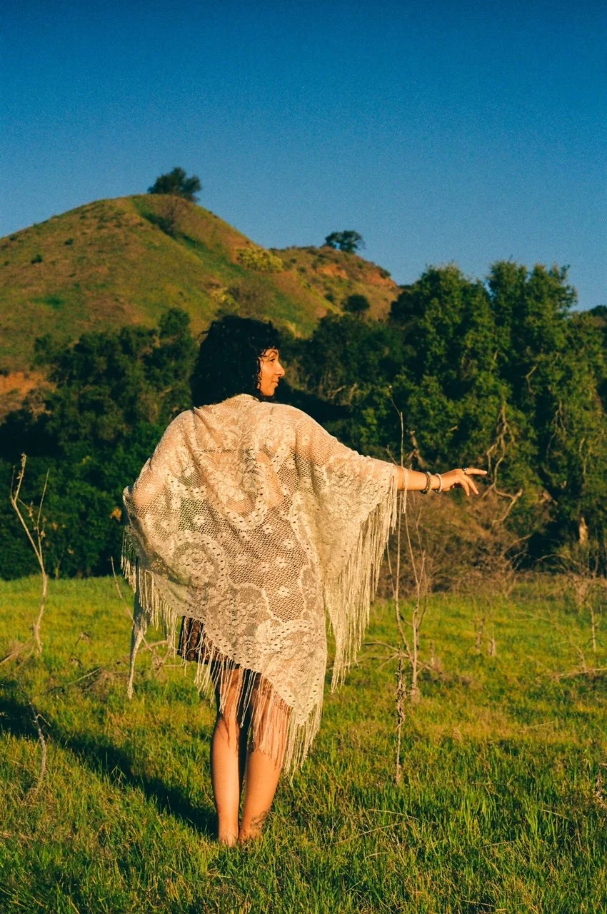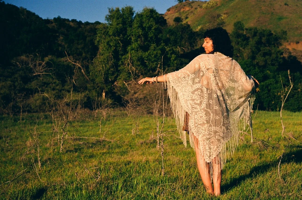 Hillside photography surrounded by trees and flowers for a visually earthy and relaxed feel.